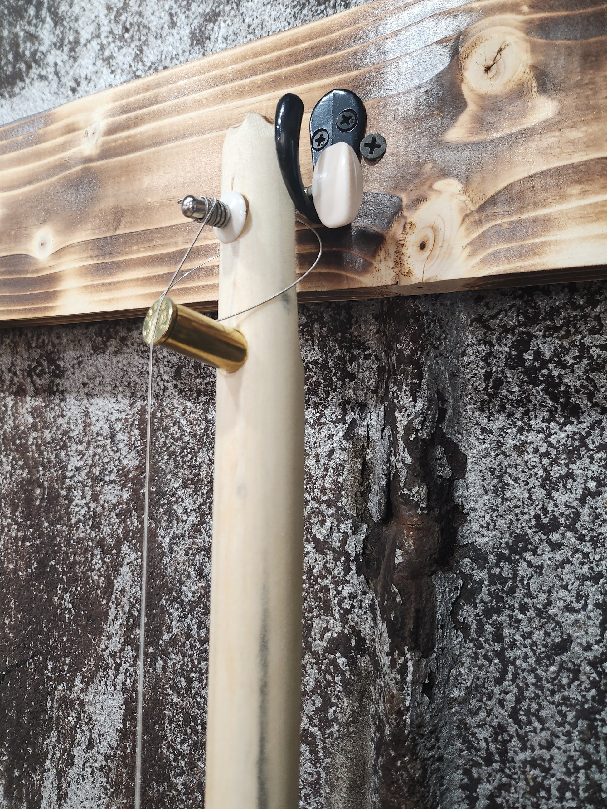 - A beautiful cigar box Banjo with custom sound holes.