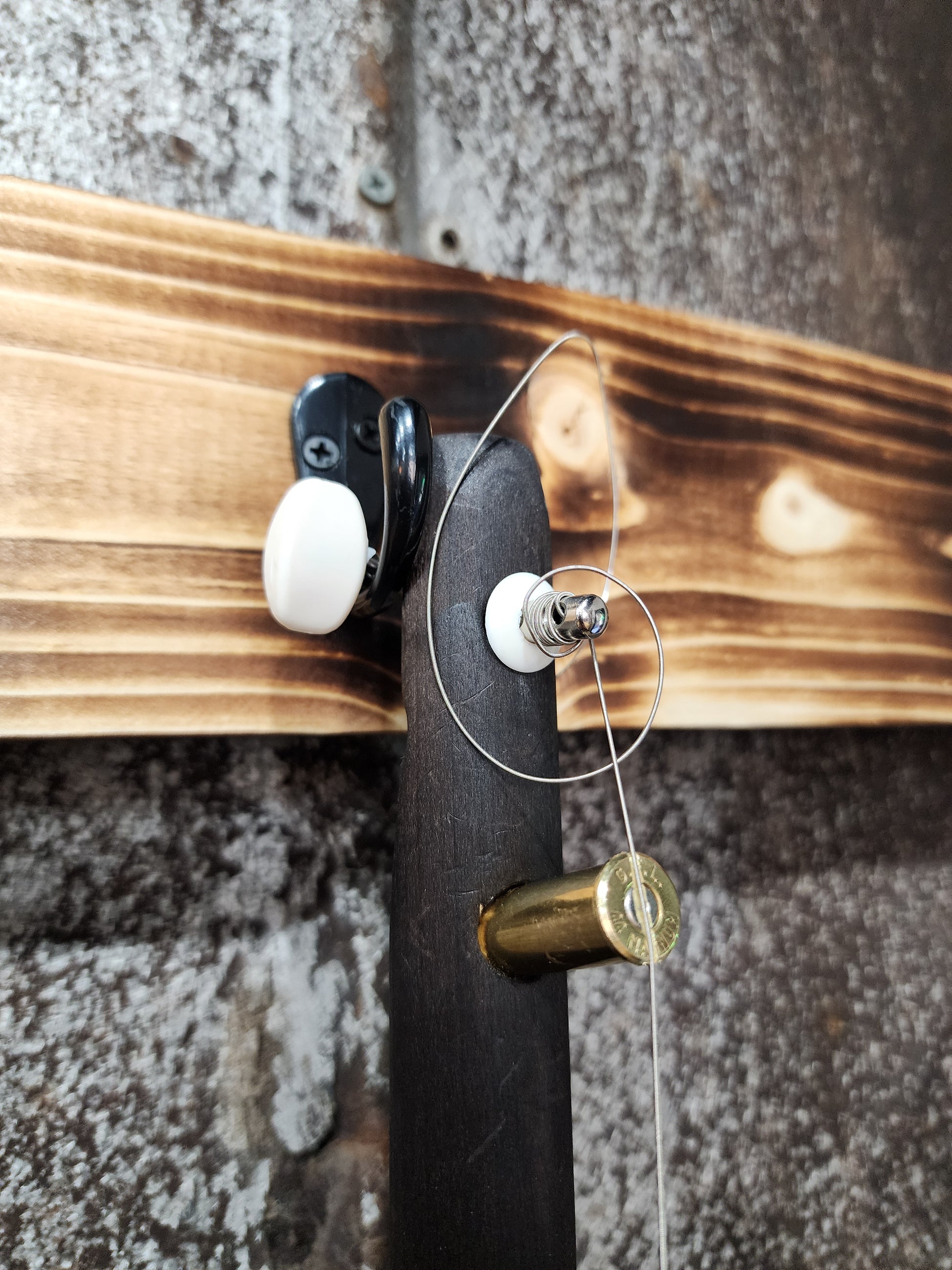 - A beautiful cigar box Banjo with custom sound holes.