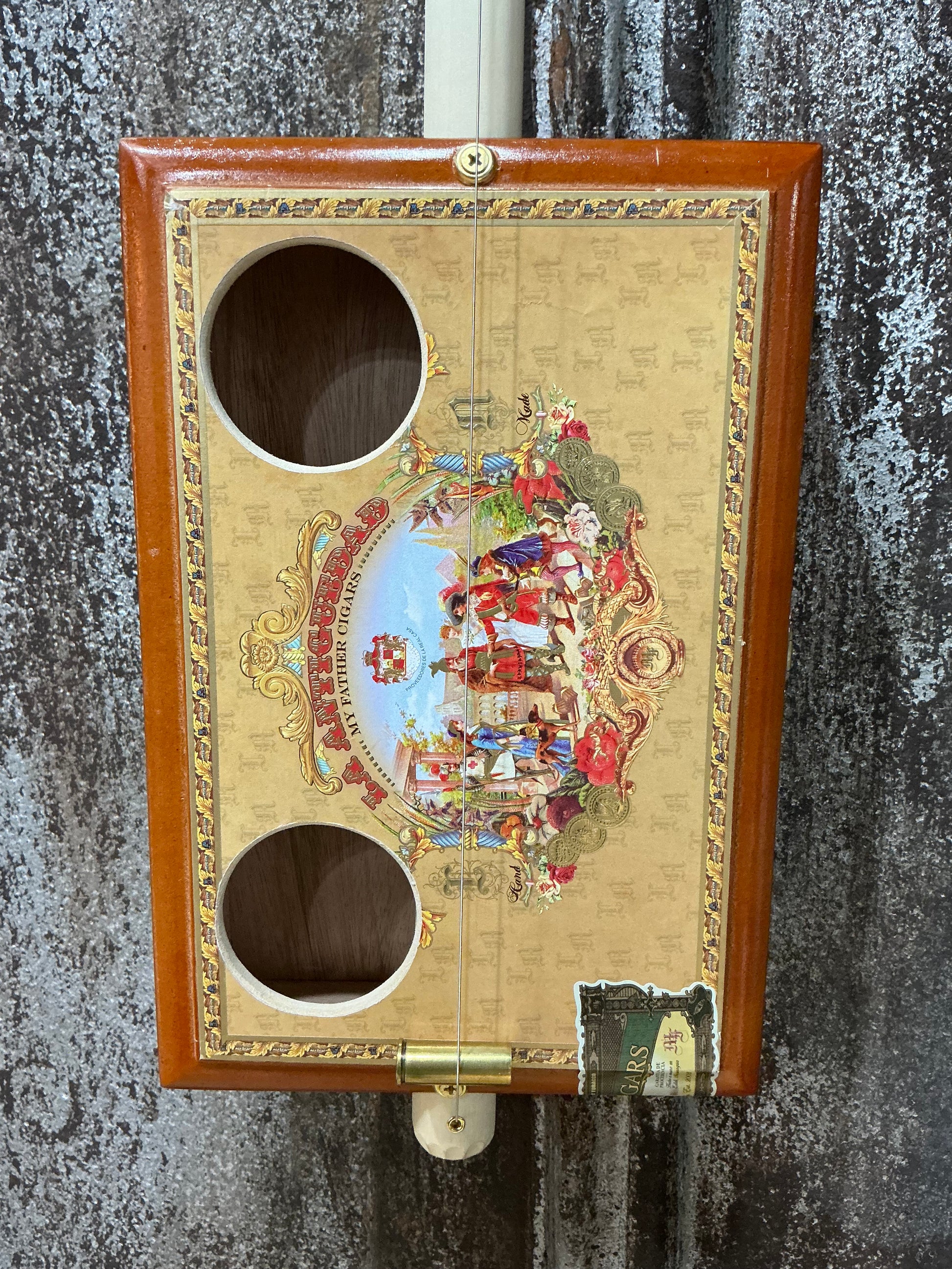 - Secret Stash. The cigar boxes body still opens for storing your slide and pick in.